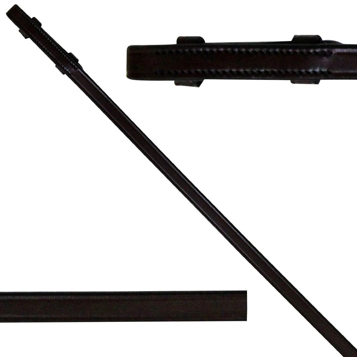 An excellent choice for curb reins with double bridles, pelham bits, or those that prefer the smooth feel of streamlined thinner leather reins. Made from the same Grade A English Sedgwick leather that is used for all of the Red Barn Collection strapgoods. Included finished bevel edging, tapered ends, and stainless steel hook-studs. Pair with your favorite Red Barn bridle to complete the blue-ribbon look!