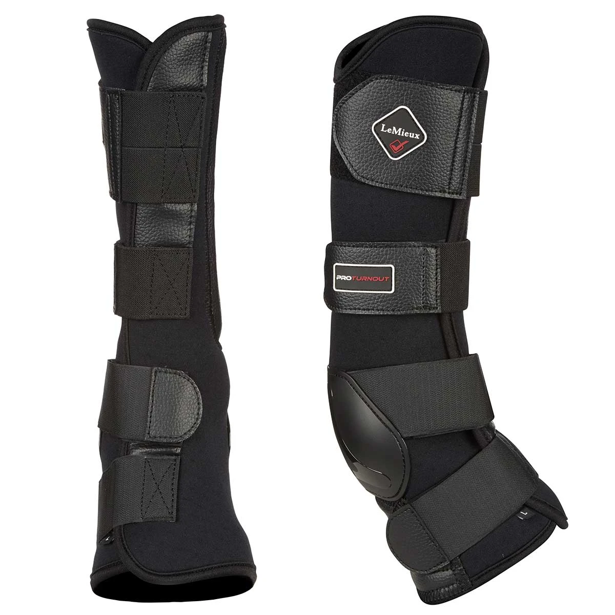 The LeMieux Turnout Boots are like your favorite Country Boots, but for your horse! Ideal for protection against crud buildup from turnout, or horses with sensitive skin, these boots are ideal for 3-season turnout. Anti bacterial ventilated neoprene avoids rubbing & sweat build-up.  Elasticated and angled strap positions allow movement with optimum fit. Durable skid cap positions boot correctly on back of the joint. Can be used on either front or hind legs; sold in pairs.