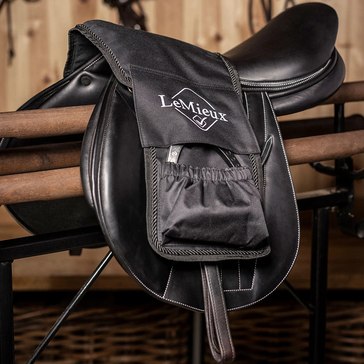 Keep your saddle from getting scuffed up with the LeMieux Vector Stirrup Cover. Lined with soft micro-fleece, the stirrup cover lays over the pommel of the saddle for protection against marks from the stirrup irons. The stirrup irons are then placed neatly into elasticated pockets with magnetic flap closure. Cover is easy to keep clean, simply wipe off with damp rag.