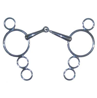 Toklat 4 Ring Continental Gag Snaffle Bit provides poll pressure through leverage with three different rein placements. Does not require a curb chain.